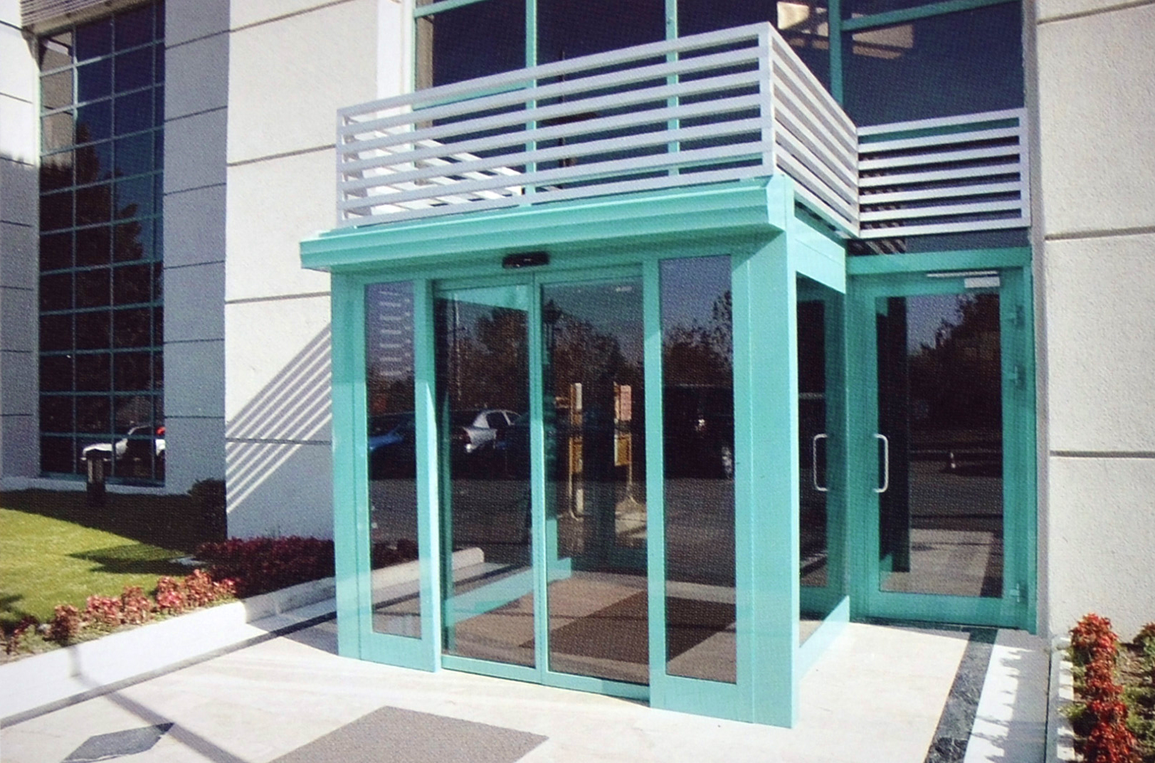 Otomatik kayar kapılar, giriş markizi ve cam çatının tadilatı
